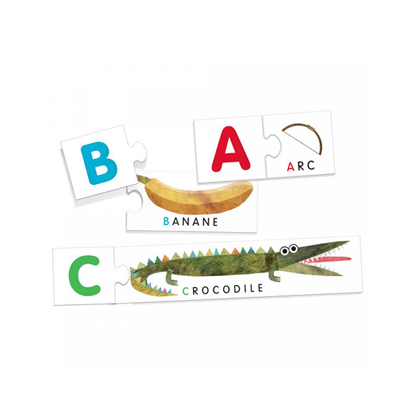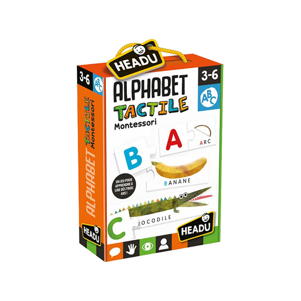 L’enfant touche les lettres imprimées en relief, associe les mots aux graphèmes et, grâce aux pièces auto-correctives, il apprend l’alphabet ainsi qu’à distinguer les mots les plus courts des plus longs.