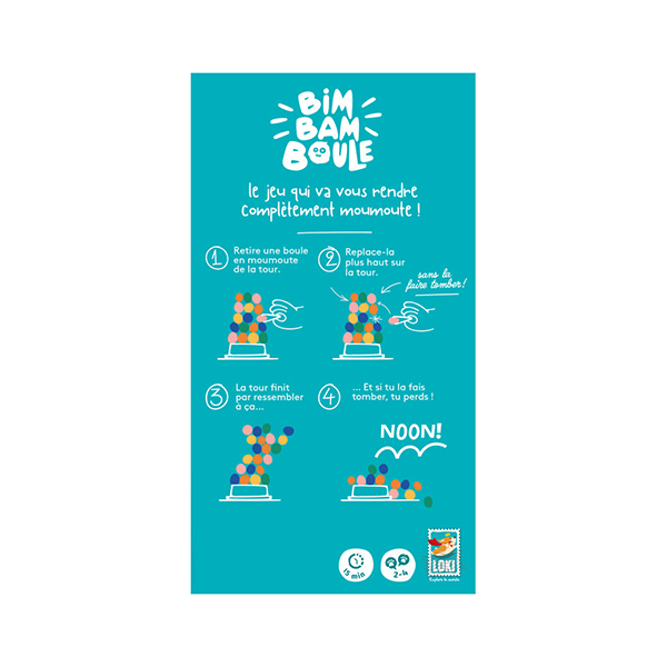 Défie la gravité en déplaçant des moumoutes colorées sur une tour extrêmement instable ! À ton tour, attrape la boule de la couleur indiquée par la carte, pour la placer en haut de la tour… Mais attention à ne rien faire tomber au risque de recevoir un gage !