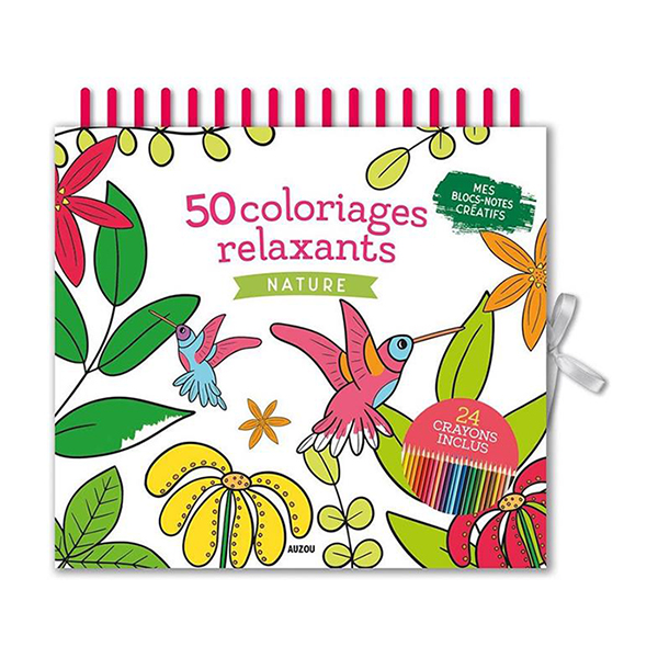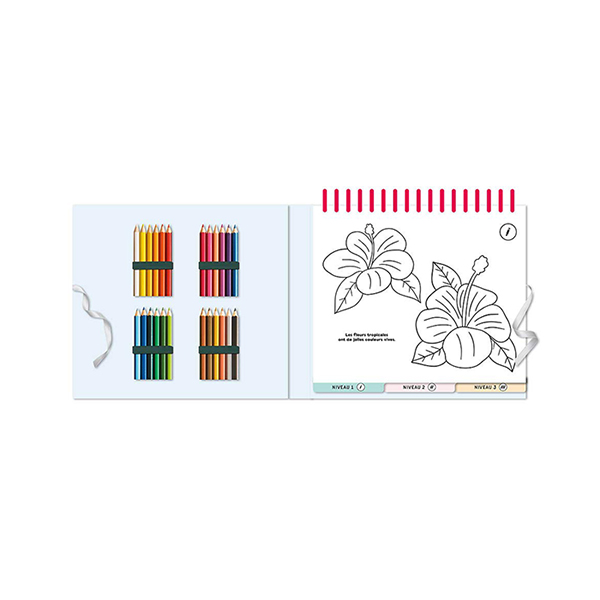 Un bloc-notes de 50 coloriages avec 24 crayons inclus pour des heures de dessin. Les coloriages sont classés selon 3 niveaux de difficulté.