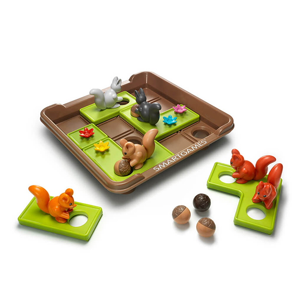Cache Noisettes XXL est un jeu de logique les enfants dès 6 ans avec 100 défis évolutifs à réaliser où vous devrez organiser le déplacement des écureuils jusqu’à ce que toutes les noisettes soient à l’abri. Dans ce jeu géant vous trouverez un cinquième écureuil jumeau supplémentaire et une noisette pourrie noire.