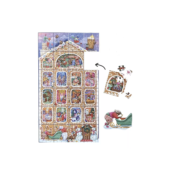 Le Puzzle Calendrier de l’Avent – Peek Into Santa’s Workshop – 24 x 20 pièces est un puzzle pour enfants à partir de 8 ans.