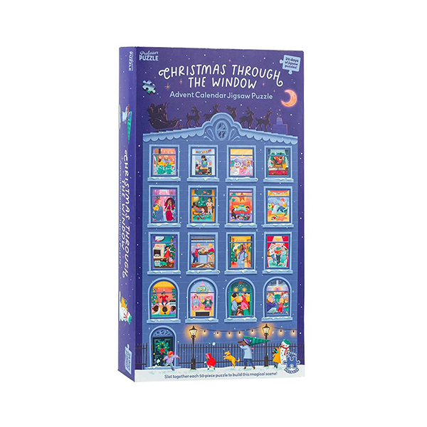 Derrière chacune des 24 fenêtres d »appartement se cache un puzzle de 50 pièces.
