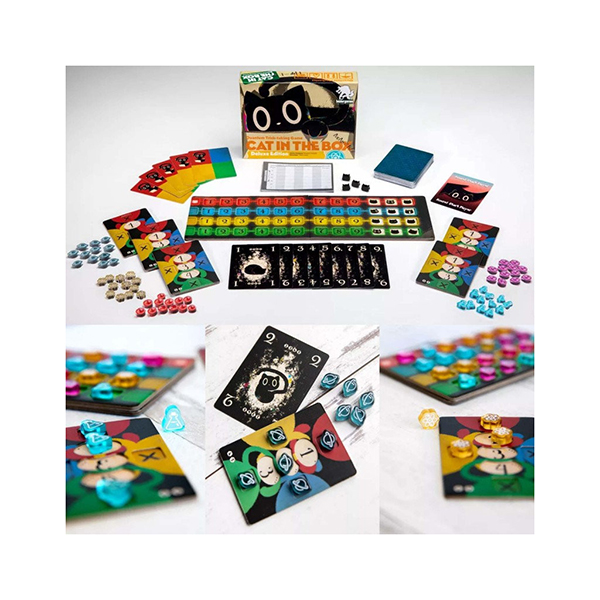 Cat in the Box est la quintessence du jeu de cartes à trucs quantiques pour 2 à 5 chats sympas, où la couleur de votre carte n’est pas définie avant que vous ne la jouiez !