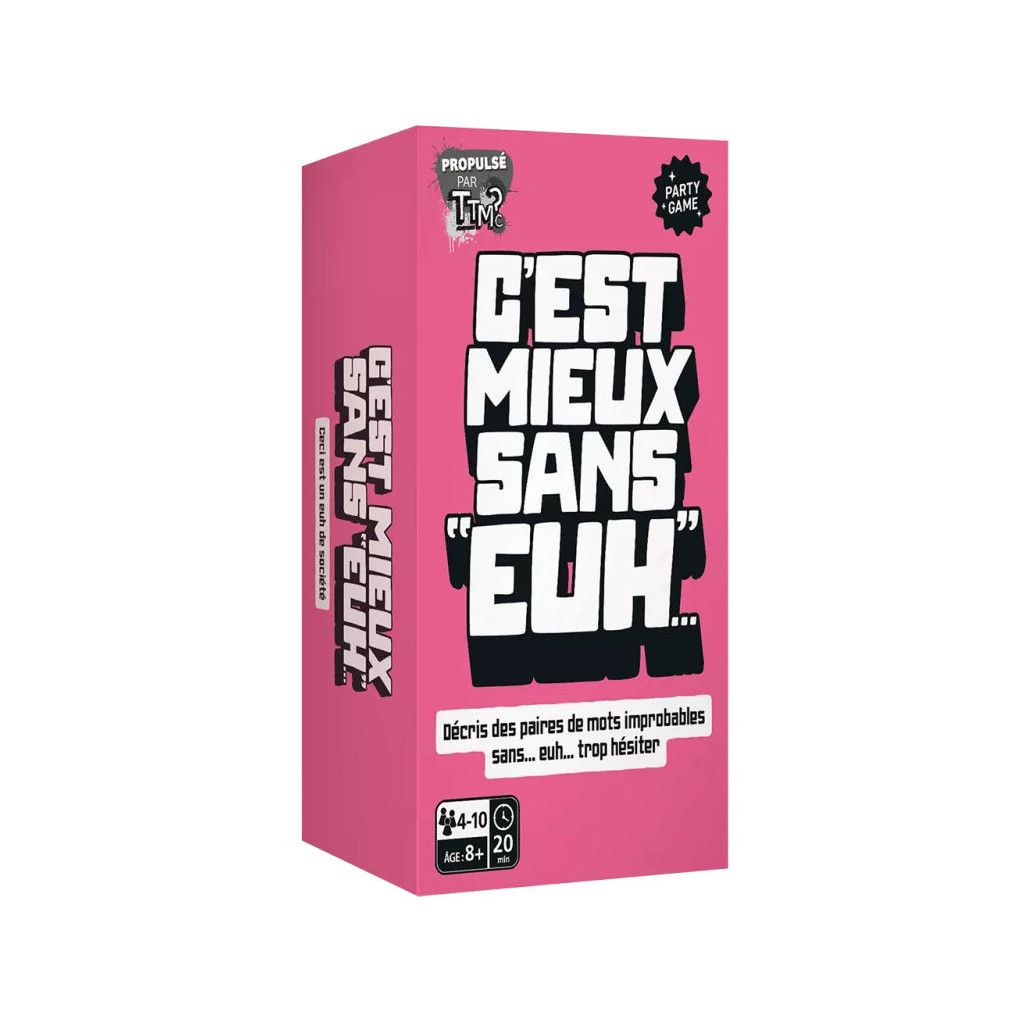 Deux équipes s’affrontent pour amener leurs pièces au bout du plateau. Ils le feront en décrivant autant d’objets étranges que possible, à partir des cartes aléatoires qu’ils ramassent. Un seul problème : vous ne pouvez pas dire « euh ». Chaque fois que vous le faites, l’autre équipe sonne la cloche et rapproche sa pièce de la victoire, augmentant ainsi la pression et le suspense ! À mesure que chaque équipe se rapproche de la fin, de plus en plus de sons deviennent interdits, ce qui en fait une course effrénée vers la ligne d’arrivée !