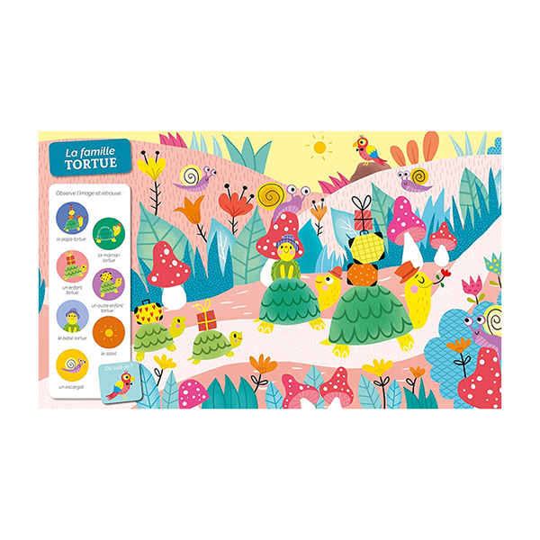 Une collection de cherche et trouve dédiée aux plus petits avec des illustrations colorées et simples, 7 éléments à retrouver par page. A faire et à refaire, seul ou avec ses parents !
