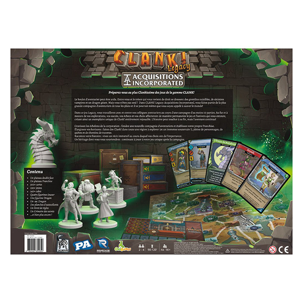 Clank! revient en version Legacy, c’est-à-dire une version à part entière (pas une extension). Il est conseillé de jouer d’abord en mode campagne d’au moins 10 parties, pour façonner votre matériel de jeu unique, en fonction des choix que vous ferez au cours de toutes vos aventures. Après la campagne, le jeu est entièrement rejouable.