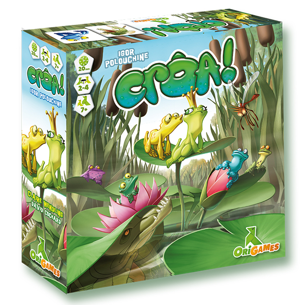 Crôa est un jeu où vous devez prendre le contrôle d’une mare qui se dévoile au fur et à mesure du déplacement de vos grenouilles. Apprenez à utiliser au mieux ses ressources : les mâles pour faire des bébés et agrandir votre colonie, les moustiques et les nénuphars pour vous déployer plus rapidement, et les roseaux pour vous reposer. Mais gare aux brochets et aux grenouilles adverses qui ne vous feront pas de cadeau ! Et n’oubliez pas que pour gagner à Crôa, il faut être le dernier joueur à conserver sa Reine en jeu.