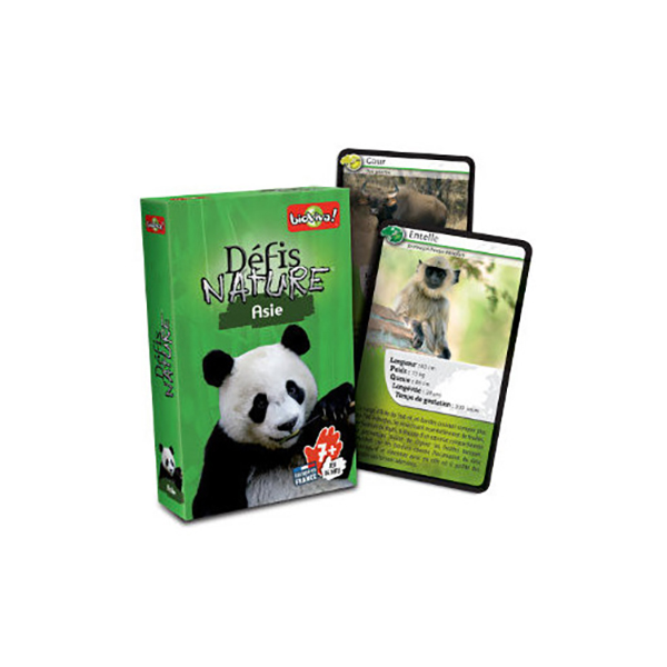 Défis Nature vous emmène à la rencontre des animaux d’Asie les plus surprenants. Découvrez les espèces à préserver, puis pariez sur les points forts de vos animaux pour collecter toutes les cartes du jeu et remporter la partie. Alors, prêts à relever le défi ?