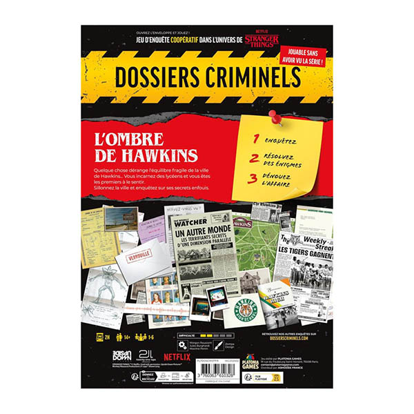 Enquêtez, résolvez des énigmes, dénouez l’affaire. Cette nouvelle enquête coopérative vous plonge dans l’atmosphère angoissante de Hawkins, la petite ville américaine où se déroule l’intrigue de la série Netflix Strangers Things. Marchez dans les pas de Mike, Lucas, Steve et Dustin, pour résoudre le mystère auquel vous êtes confrontés. Serez-vous obligés de vous rendre dans la dimension parrallèle du terrifiant « Monde à l’envers » ?