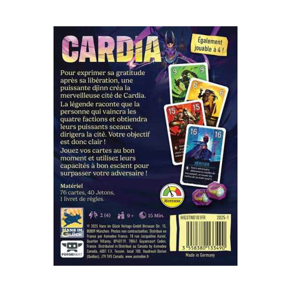 Co-conçu par l’un des chroniqueurs du site de référence Ludovox, Duel pour Cardia a étonné et impressionné l’équipe par le soin apporté aux capacités des cartes et par les twists proposés par le jeu – le fait que dans un duel, seule la carte la plus faible active sa capacité, incitant parfois à perdre volontairement, et que certains effets puissent remettre en cause l’issue des affrontements passés !