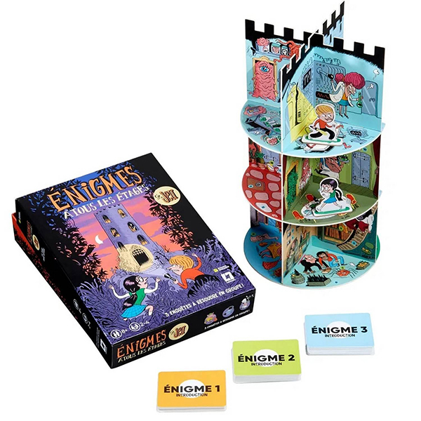 Plongez dans une aventure immersive où coopération et mystère se rencontrent pour offrir une expérience de jeu inédite ! Énigmes à tous les étages et un jeu d’enquête coopératif en équipe qui vous invite à résoudre des énigmes tout en travaillant avec vos partenaires. Le tout est mis en valeur par un objet spectaculaire en 3 dimensions, une tour de 3 étages à assembler, qui rend le gameplay encore plus captivant et immersif. Une expérience parfaite pour les amateurs de jeux coopératifs, d’enquêtes et de défis immersifs.