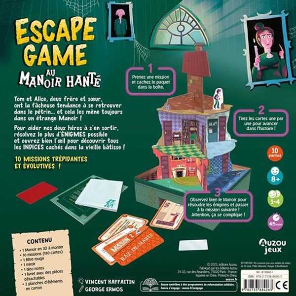 Ils devront faire preuve d’ingéniosité et d’observation pour déjouer les ruses et s’échapper de cette bien étrange demeure ! 10 missions évolutives !
