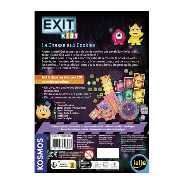 Heureusement, les monstres aiment avoir de la visite, et ils souhaitent vous récompenser pour votre bravoure. Ils vous posent 6 énigmes différentes. Tentez de les résoudre ensemble ! Pour chaque énigme résolue, vous obtenez l’une des 6 clefs d’argent permettant d’ouvrir les boîtes à cookies. Saurez-vous résoudre toutes leurs énigmes ? Les boîtes sauvées contiennent-elles encore des cookies, ou les monstres vous ont ils fait des farces ?