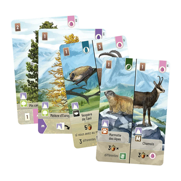 Alpes est une extension pour le jeu Forêt Mixte. Vous y trouverez 36 nouvelles cartes superbement illustrées à ajouter à votre jeu de base.
