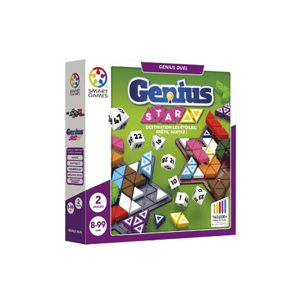 La toute nouvelle collection « Genius duel » de Smart vous présente son second titre: Genius Star. Mêlant logique et rapidité, il permet aux joueurs de s’affronter lors de parties courtes. Il propose cinq niveaux de difficulté, pour jouer à égalité ou avec des différences choisies.