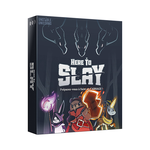 Here to Slay est un jeu de cartes stratégique dans un univers de fantasy, conçu par les créateurs d’Unstable Unicorns. Il vous invite à créer votre propre Groupe de Héros afin d’occire de dangereux Monstres tout en sabotant les efforts de vos concurrents.
