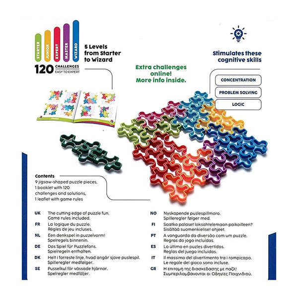 Choisissez l’un des cent-vingt défis et complétez le plan de jeu en plaçant les pièces de couleur aux bons endroits et dans la bonne orientation. Si une pièce ne s’insère pas dans la forme du plan de jeu, une rotation de 90° peut vous aider… ou non ! IQ Matrix se présente comme un jeu de poche avec un couvercle à emporter et à jouer partout où vous allez. Ce jeu d’encastrement malin convient aussi bien aux enfants qu’aux adultes.