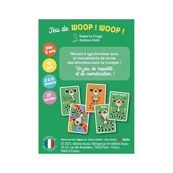Réussis à synchroniser les mouvements de danse et les sons des lémuriens, sans te tromper pour terminer ton tas de cartes en premier ! Un jeu de rapidité et de coordination dès 6 ans.