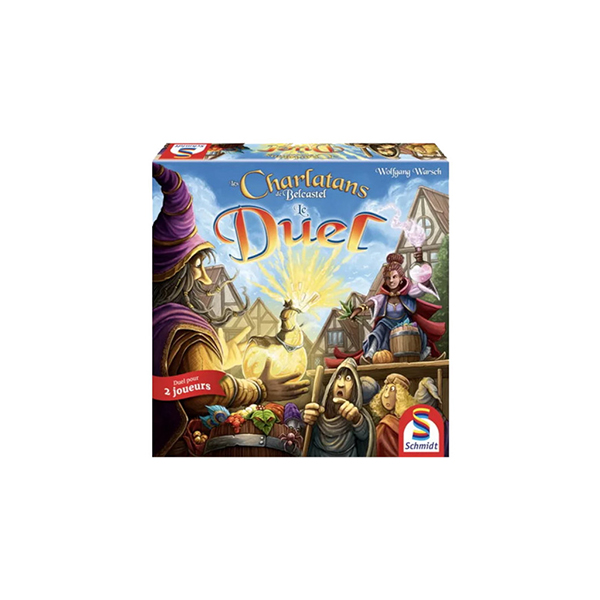 Il y a beaucoup d’activité sur la place du marché de Belcastel. Arriverez vous à tirer votre épingle du jeu ? Dans Duel de Charlatans, vous retrouverez tout le plaisir des Charlatans de Belcastel dans un nouveau jeu spécialisé conçu pour deux joueurs.