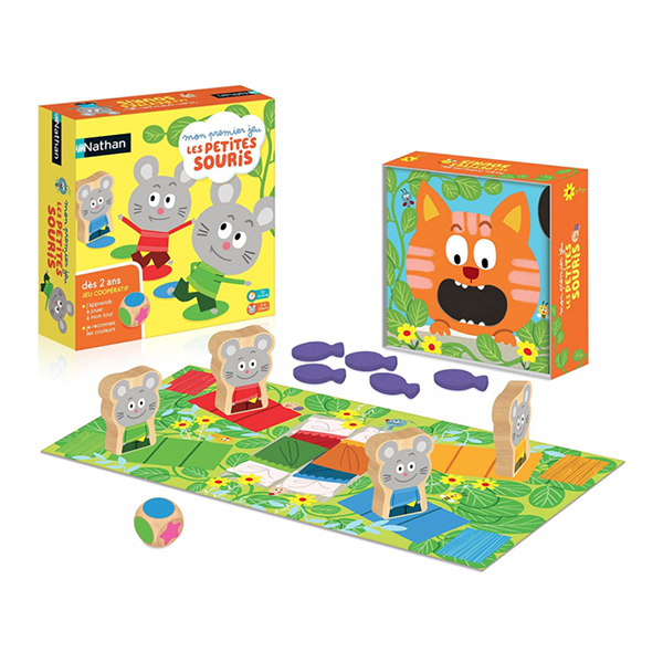 Vite, vite ! Aidez les 4 petites souris à regagner leur lit avant que le chat n’ait mangé les 5 poissons ! Les Petites Souris est un excellent jeu coopératif pour les tout-petits !