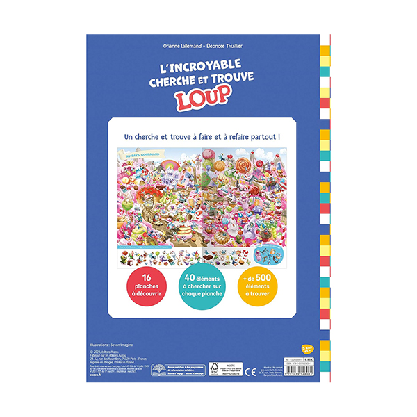 Loup part en voyage, autour du monde ! De la mégalopole au désert des mille et une nuits, Loup visite d’incroyables paysages. À toi de le retrouver sur chaque planche, parmi ses amis et 40 autres éléments et personnages à retrouver.