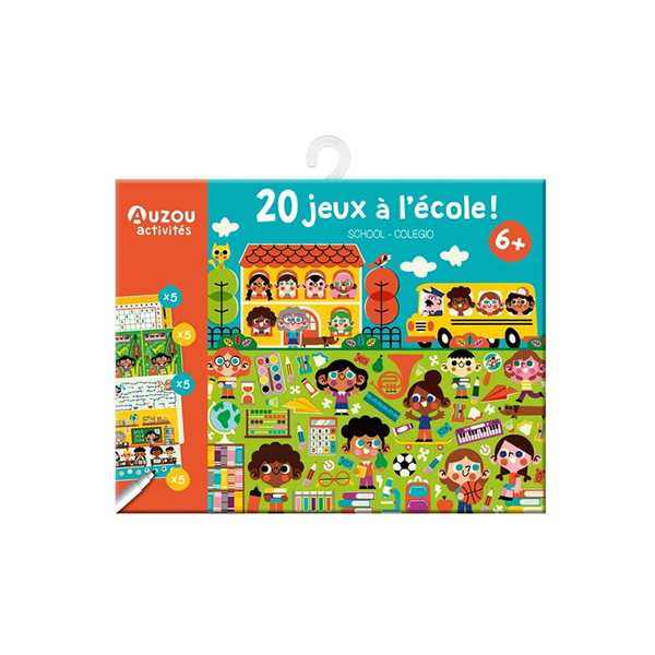 Pochette de jeux sur le thème de l’école ! Au recto des cartes, des jeux de labyrinthes, des sudokus, des cherche et trouve, des différences… Au verso, un jeu de cherche et trouve ! 20 jeux plastifiés au total