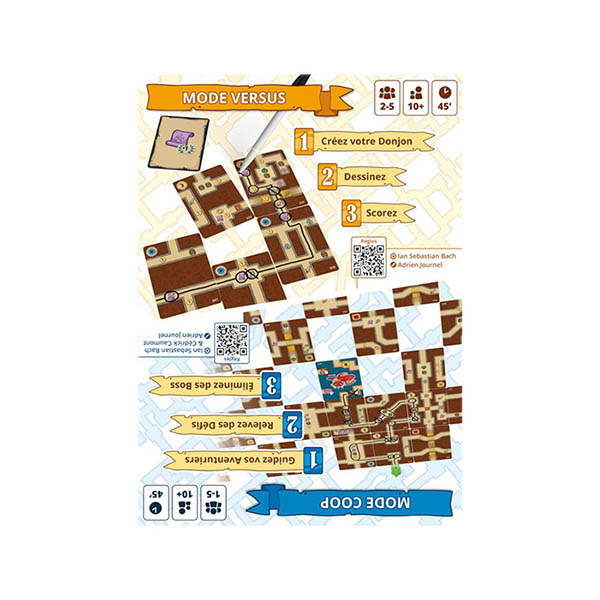 – En mode compétitif, chaque joueur construit son propre donjon et tente de scorer au mieux en dessinant le chemin parfait à travers pièces, pièges, objets, monstres et portails magiques.