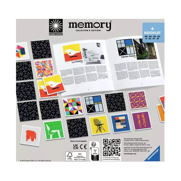Le plus célèbre des jeux de mémoire dans le monde moderne de EAMES ! Toute la famille s’amuse à retrouver des paires d’images identiques, en développant son sens de l’observation et sa capacité de mémorisation. Le memory® permet d’initier tout en douceur les plus jeunes aux jeux de société. Il suffit de quelques secondes seulement pour se familiariser avec la totalité des règles. Une fois toutes les cartes disposées face cachée sur la table, toute la famille est prête à jouer !
