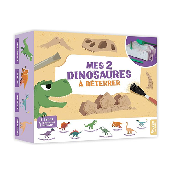 Un joli coffret d’activité pour s’amuser à déterrer deux squelettes de dinosaures. Le coffret est constitué d’un bloc à casser, d’ustensiles, de 2 dinosaures au hasard parmi 8 espèces et d’un livret contenant plein d’informations passionnantes. Parfait pour partir à la découverte de la paléontologie et des dinos!
