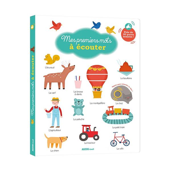 L’enfant découvre ses premiers mots à travers des univers familiers et de belles scènes détaillées. En appuyant sur les puces sonores, il entend le mot lu, ainsi que le son de l’objet ou l’animal. 9 beaux univers et près de 20 puces sonores !