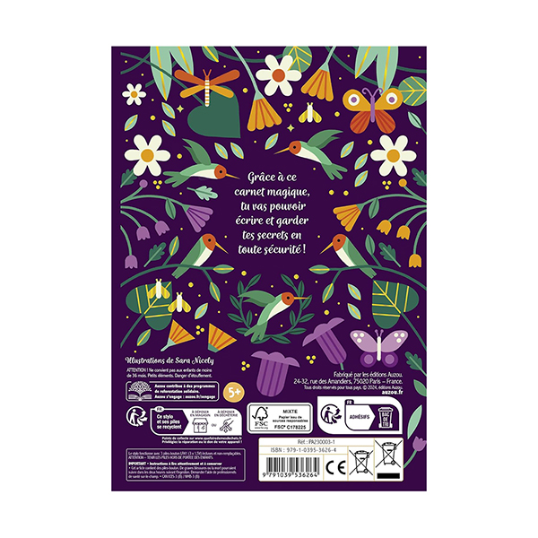 Dans ce carnet secret, les enfants sont invités à noter tous leurs secrets…. tout au long de l’année. L’ouvrage propose un stylo magique qui permet d’écrire en s’amusant grâce à son encre invisible. À l’aide de la lampe UV, les messages secrets sont révélés.