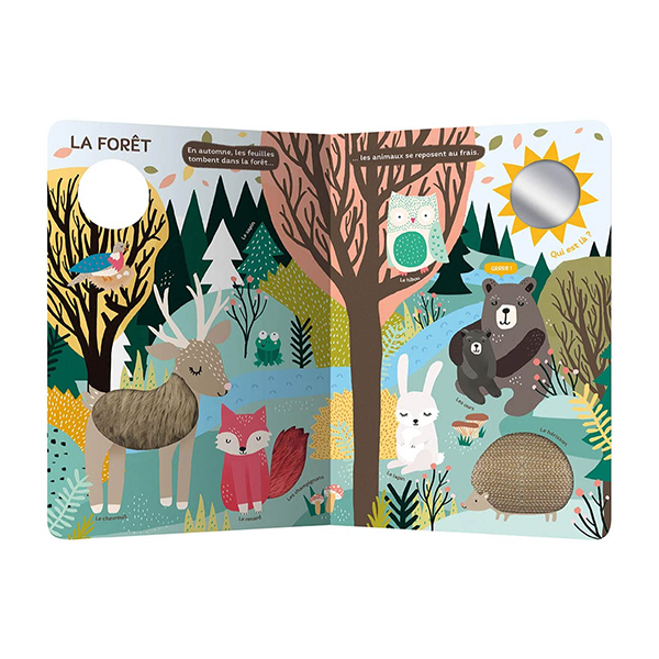 Trois matières par page, un miroir, un flap en tissu et plein de surprises attendent l’enfant qui pourra découvrir ce monde à quatre pattes.