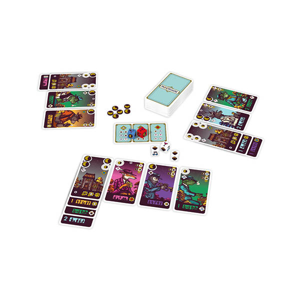 Une partie consiste en une succession de tours, qui se déroulent tous de la même manière : d’abord le joueur actif lance – et éventuellement relance – tous les dés auquel il a accès pour valider un pool de dés. Puis chaque joueur dispose des icônes obtenues comme ils le souhaite. Ces icônes représentent des ressources interdites prisées de clients potentiels (chaque joueur dispose de ses propres clients potentiels). Satisfaire les besoins spécifiques d’un client permet de le faire entrer dans son bar et d’ainsi bénéficier de son bonus permanent : points de prestige, ressources, relances, accès à d’autres dés (dés bleu et rouge), à d’autres clients potentiels, etc. Si jamais un joueur ne veut pas ou ne peut pas exploiter le résultat des dés, il n’est pas bloqué ! Il peut soit récupérer un jeton Lune à placer sur l’une de ses cartes afin de débloquer un bonus temporaire; soit remplacer l’un de ses clients potentiels par un nouveau.