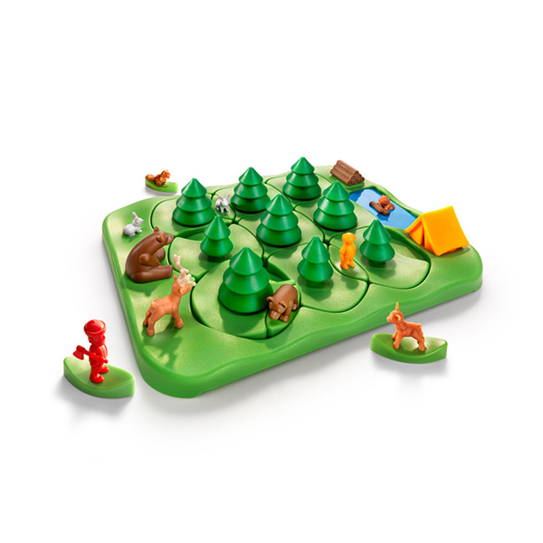 Faites tourner les sapins, petits et grands, pour déplacer les figurines des personnages et des animaux afin de les aider à rejoindre leurs parents ou leur habitat.