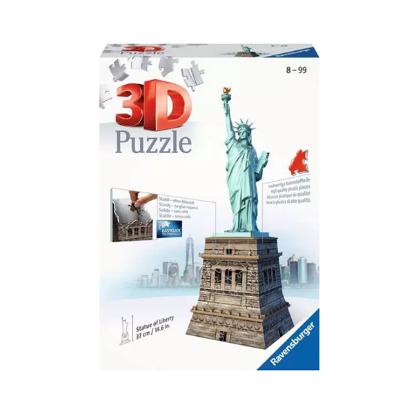 Cette superbe reproduction en 3D de la Statue de la Liberté est constituée de 108 pièces de puzzles en plastique numérotées, ainsi que d’accessoires uniques pour finaliser l’édifice. Un moyen unique et ludique de re-découvrir ce célèbre monument !