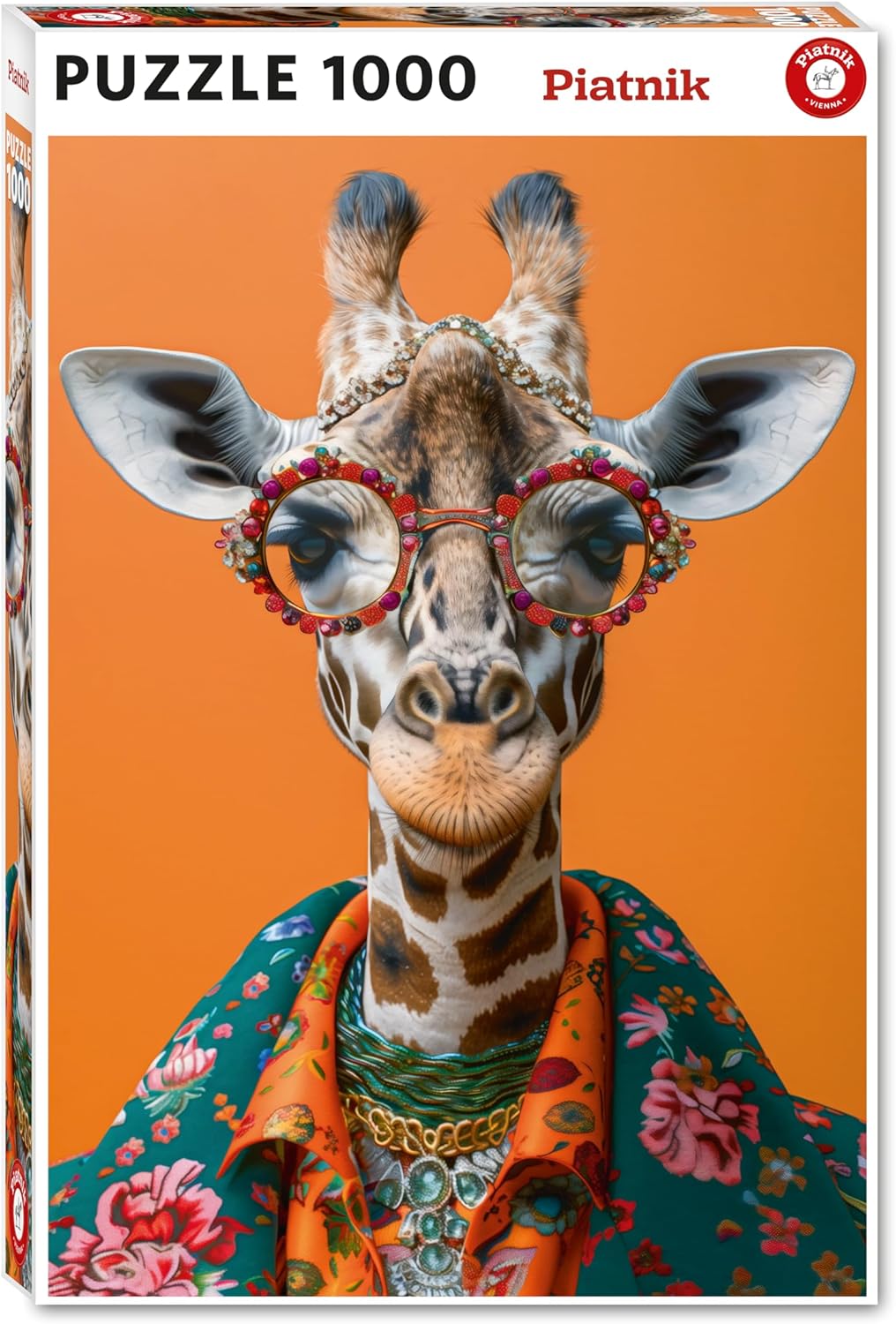 Découvrez le puzzle 1000 pièces, Crazy giraffe de la marque Piatnik ! Dimensions du puzzle assemblé : 48 x 68 cm