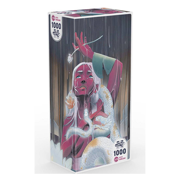 Son corps semi immergé, les fleurs qui l’entourent, son visage et ses yeux perdus dans la contemplation des serpents sont autant d’éléments qui vous permettront de vous immerger à votre tour dans ce puzzle !