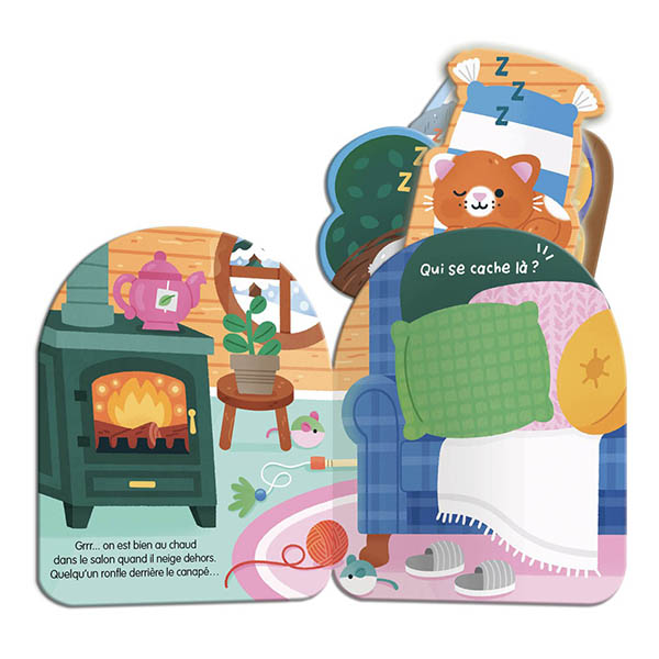 Tire sur les éléments qui dépassent et écoute les sons pour découvrir qui se cache à chaque page.