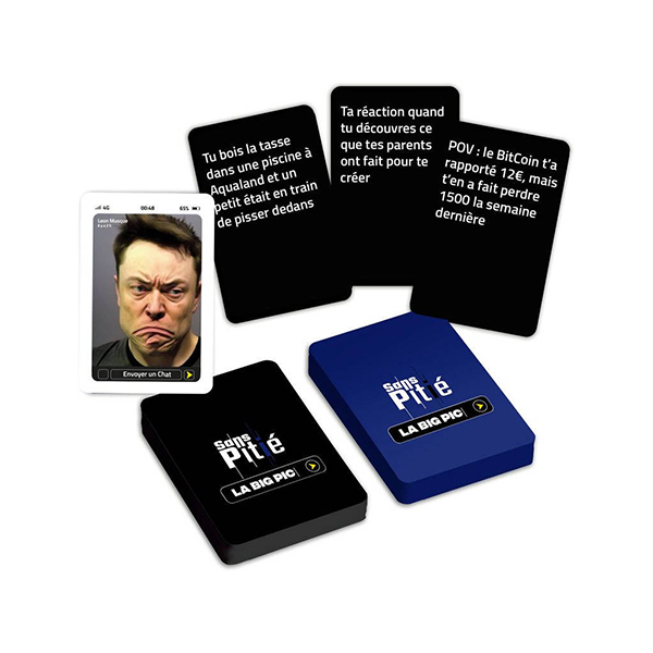 « Sans Pitié, le jeu méchant pour les gens gentils » revient avec La Big Pic. Le concept reste le même mais cette fois-ci il est tourné sur les memes les plus populaires d’Internet. Cette version c’est 600 cartes dont 120 images/memes 100% funs des deux cracks de l’humour Blanc Manger Coco et Juduku.