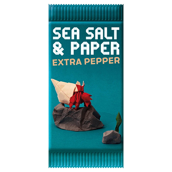 vec « Extra Pepper », Sea Salt & Paper prend une saveur inédite ! Cette extension ajoute un deck de cartes « événement ». À chaque manche, une carte événement est tirée, modifiant les règles communes. Pose de duo, gestion de main, rebondissements tactiques : le jeu devient plus dynamique et imprévisible. Coquillages valant 2 points, gagner avec 3 sirènes au lieu de 4, regarder la main d’un adversaire, etc. les possibilités des cartes « évènement » sont très variées et ajoutent de nombreuses possibilités dans les stratégies des joueurs.