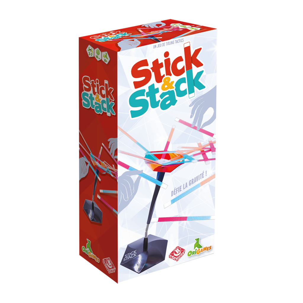 Gardez l’équilibre ! Stick & Stack mets votre dextérité à rude épreuve. Piochez un stick et posez-le sur la Tour en touchant les bonnes couleurs, mais attention, la Tour est capricieuse… et sur ressort ! Plus les sticks s’empilent, plus elle risque de pencher et si ça tombe, c’est perdu ! Compétitif, coopératif ou en mode défis, vous allez adorer déjouer les lois de la gravité.
