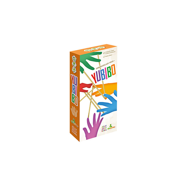 Yubibo est un jeu d’adresse coopératif. Construisez ensemble une structure aérienne à l’aide de baguettes de bois et de vos doigts ! Faites tenir chaque extrémité du bâtonnet entre les doigts des joueurs comme indiqué sur les cartes. Variez les parties en choisissant le mode défi !