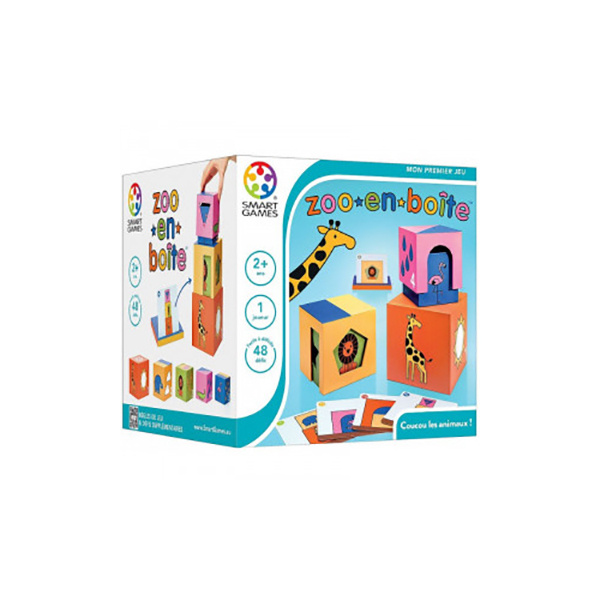 « Zoo en Boîte » est un jeu de manipulation et d’observation pour les petits qui intègre les notions de couleurs, de formes, de perspective, d’intérieur et d’extérieur.